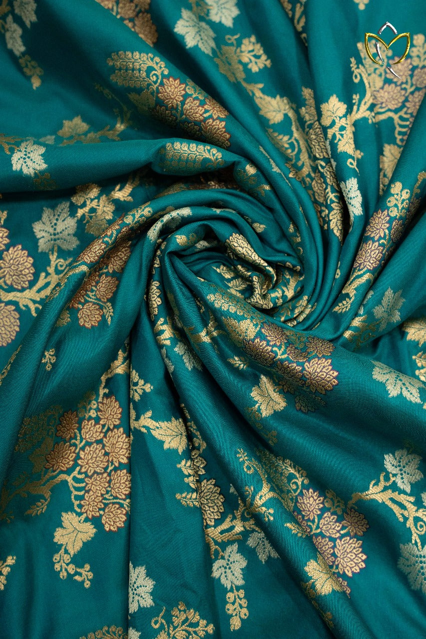 Drape yourself in elegance with this Turquoise Blue Banarasi Pattu Saree, a beautiful blend of traditional craftsmanship and modern design. The saree features an all-over Kaduva Jaal pattern, with exquisite meenakari weaving that adds vibrant detailing. The trendy border and intricate turning weaving enhance its sophisticated charm. Crafted with pure zari and woven with precision, this heavy, rich saree is perfect for weddings, festive occasions, and special celebrations, making it a stunning addition to your collection that radiates luxury and elegance.