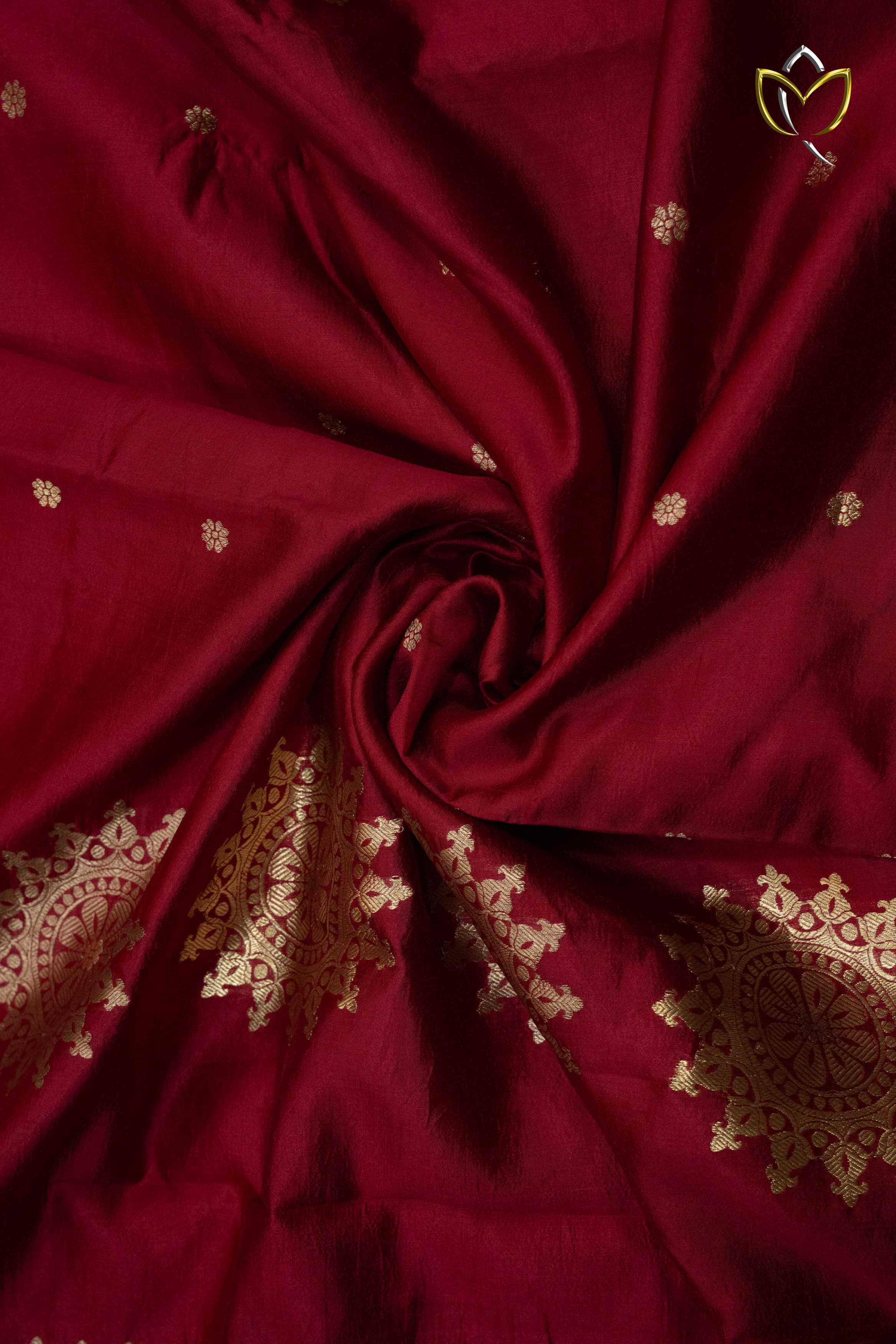 Add a touch of elegance to your wardrobe with this Banarasi Raw Mango Saree in a vibrant pinkish-red color. The saree features a plain raw mango base, beautifully enhanced with delicate zari circles that add subtle sophistication. Lightweight and handwoven, this saree offers comfort without compromising on style. Perfect for festive occasions, casual events, or even day-to-day wear, it combines simplicity and grace, making it an ideal choice for those who appreciate understated elegance.