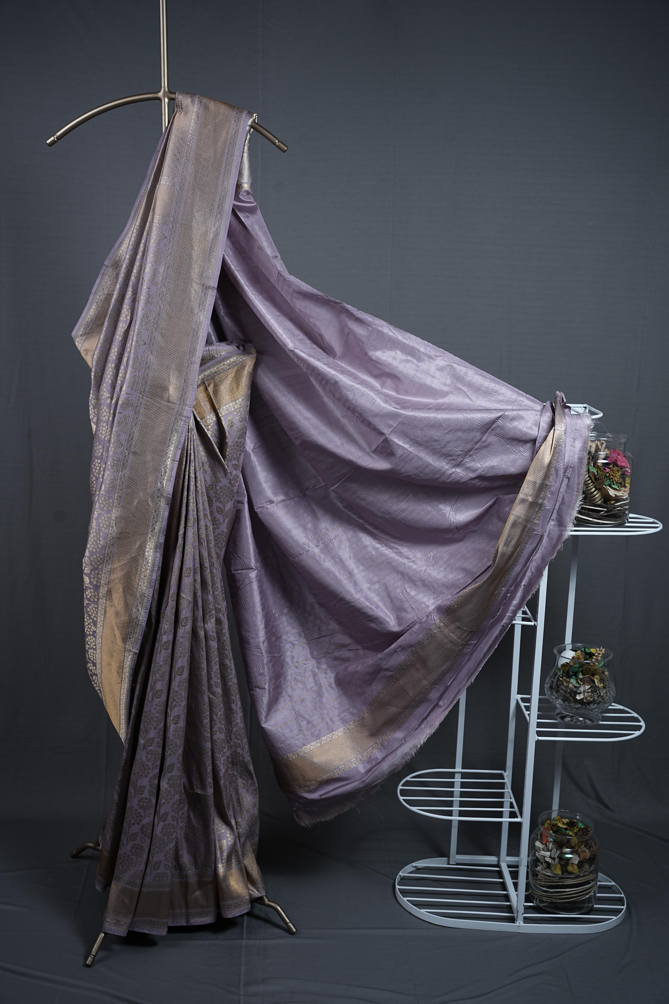 Elevate your ethnic wardrobe with this exquisite lilac Banarasi silk saree, featuring an all-over gold and silver zari weave that exudes timeless elegance. Completely handwoven to perfection, this masterpiece showcases intricate craftsmanship with a richly designed pallu, adding a regal touch. The luxurious drape and sophisticated sheen make it an ideal choice for weddings, festive occasions, and grand celebrations. Pair it with traditional jewelry to embrace the heritage of Banaras with unmatched grace. Shop now and indulge in the beauty of handcrafted luxury