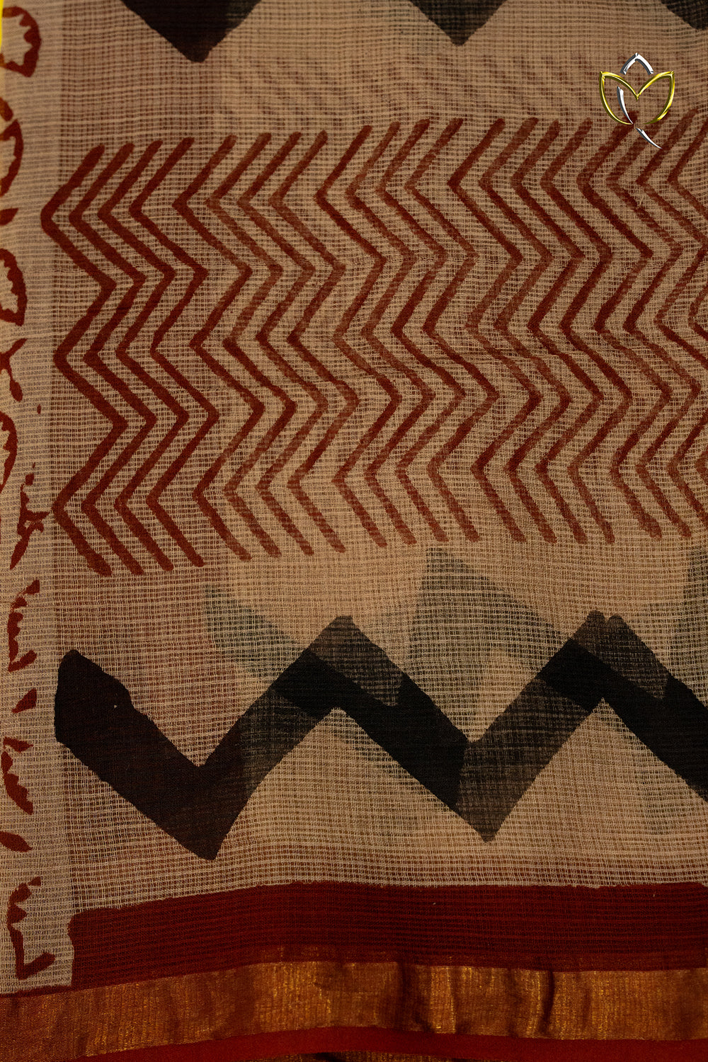 Add a touch of modern elegance with our Cotton Kota Saree in a stylish combination of black and beige. Featuring a bold zig-zag design, this saree creates a striking contrast that enhances its visual appeal. The lightweight cotton Kota fabric ensures maximum comfort and breathability, making it perfect for long wear. Whether you're attending a casual event or a semi-formal gathering, this saree offers a chic, yet understated look, blending sophistication with ease.