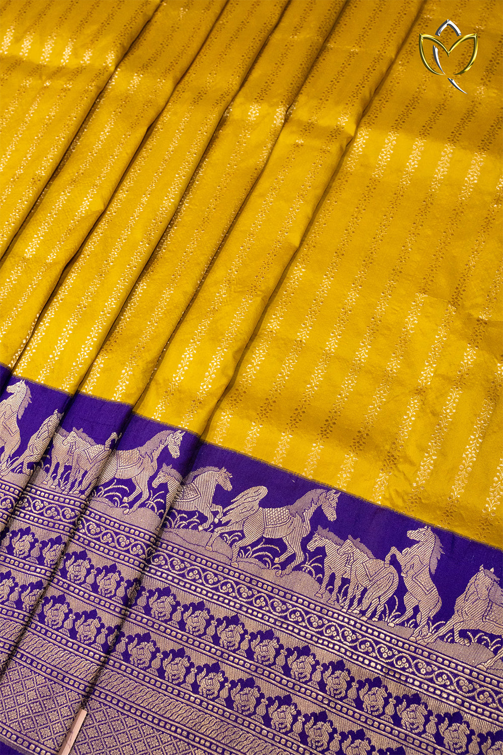 Pure Banarasi Yellow Saree with Purple Combination and Kadwa Border