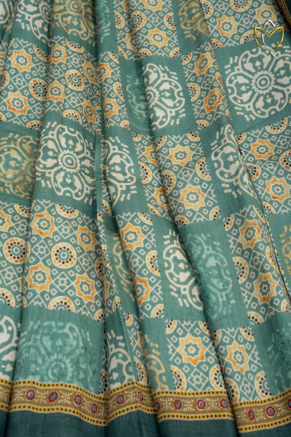 Semi Tussar Saree in Pastel Color with Ajrakh Print